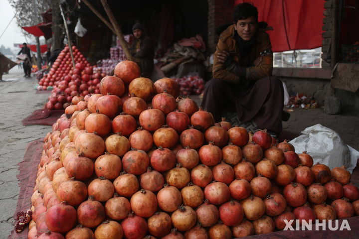[신화/뉴시스] 2025년 12월 아프간 수도 카불의 석류 장사꾼 |