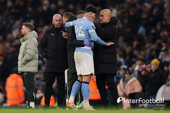 눈앞에서 승리를 놓친 맨시티에 더 큰 악재가 찾아왔다. 핵심 수비수 그바르디올이 큰 부상을 입은 것. 후반 4분 그바르디올이 상대 공격을 막은 뒤 다리에 고통을 호소했다. 의료진이 투입됐으나 더 이상 뛸 수 없었다.
