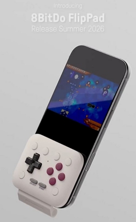 [디지털투데이 AI리포터] 중국 게임 컨트롤러 제조 기업 8빗도(8BitDo)가 스마트폰에서 레트로 게임을 즐기기 위한 전용 모바일 컨트롤러 플립패드(FlipPad)를 공개했다.