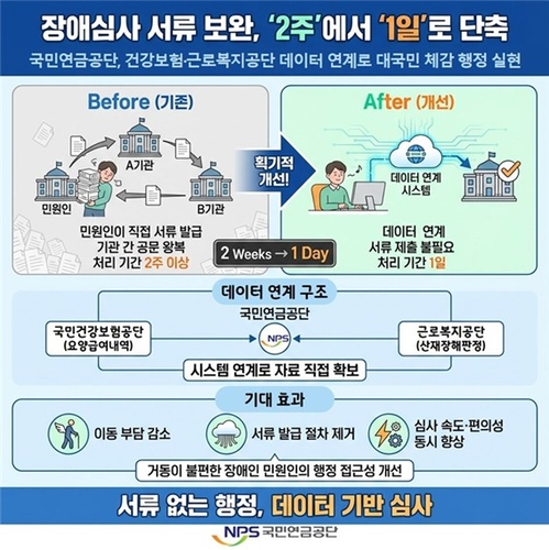 국민연금공단은 장애 정도 심사 과정에서 서류 보완 기간을 2주에서 하루로 단축했다고 오늘(6일) 밝혔습니다.