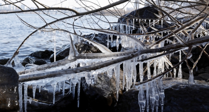 서울 최저기온이 영하 12도를 기록한 지난 2일 서울 영등포구 여의도 한강변에 얼음이 언 모습./사진=뉴시스 |
