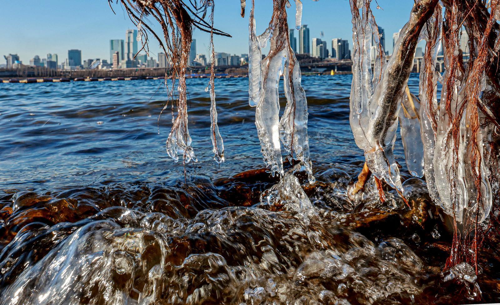 영하권 추위로 본격적인 겨울날씨를 보인 31일 서울 광진구 인근 한강에 고드름이 얼어있다. 2025.12.31/뉴스1 |
