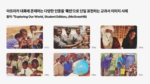 아울러 아프리카 대륙의 실제 크기를 왜곡한 '메르카토르 도법' 세계지도가 사용돼 학습자의 공간 인식을 오도할 수 있는 것으로 나타났다.