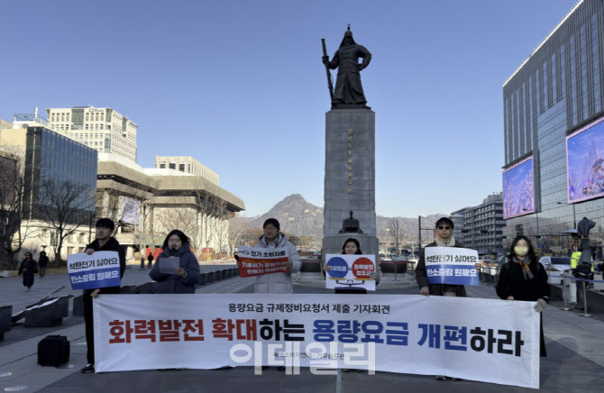 기후솔루션과 녹색소비자연대전국협의회는 6일 광화문 광장에서 기자회견을 열고, 화석연료 발전을 보조하는 용량요금 제도 개선을 촉구하는 규제정비요청서를 규제개혁위원회에 제출했다고 밝혔다.