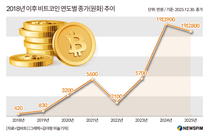 [그래픽] 2018년 이후 비트코인 연도별 종가(원화) 추이