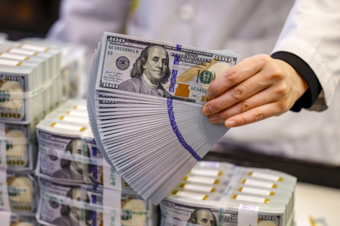 6일 서울 중구 하나은행 위변조대응센터에서 직원이 달러를 정리하고 있다. 지난달 우리나라 외환보유액이 7개월 만에 하락 전환하며 두달 만에 다시 4300억 달러 밑으로 내려왔다./사진=뉴시스 |