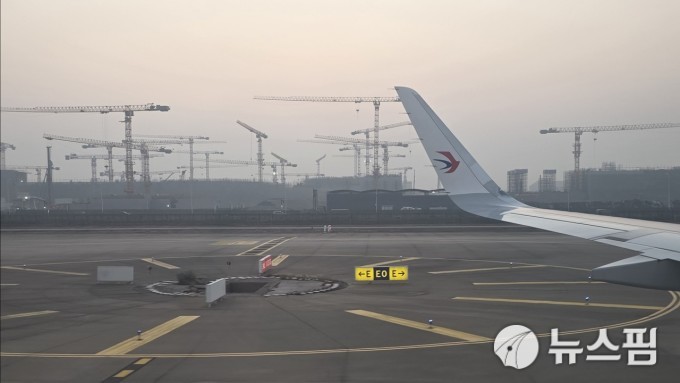 [서울=뉴스핌] 송현도 기자 = 상하이 푸동국제공항 너머로 보이는 공사 현장 2026.01.06 dosong@newspim.com |