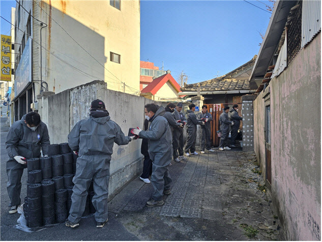 사회봉사명령 대상자들이 저소득층 연탄 나눔 활동에 참여하고 있다. (사진=법무부) |