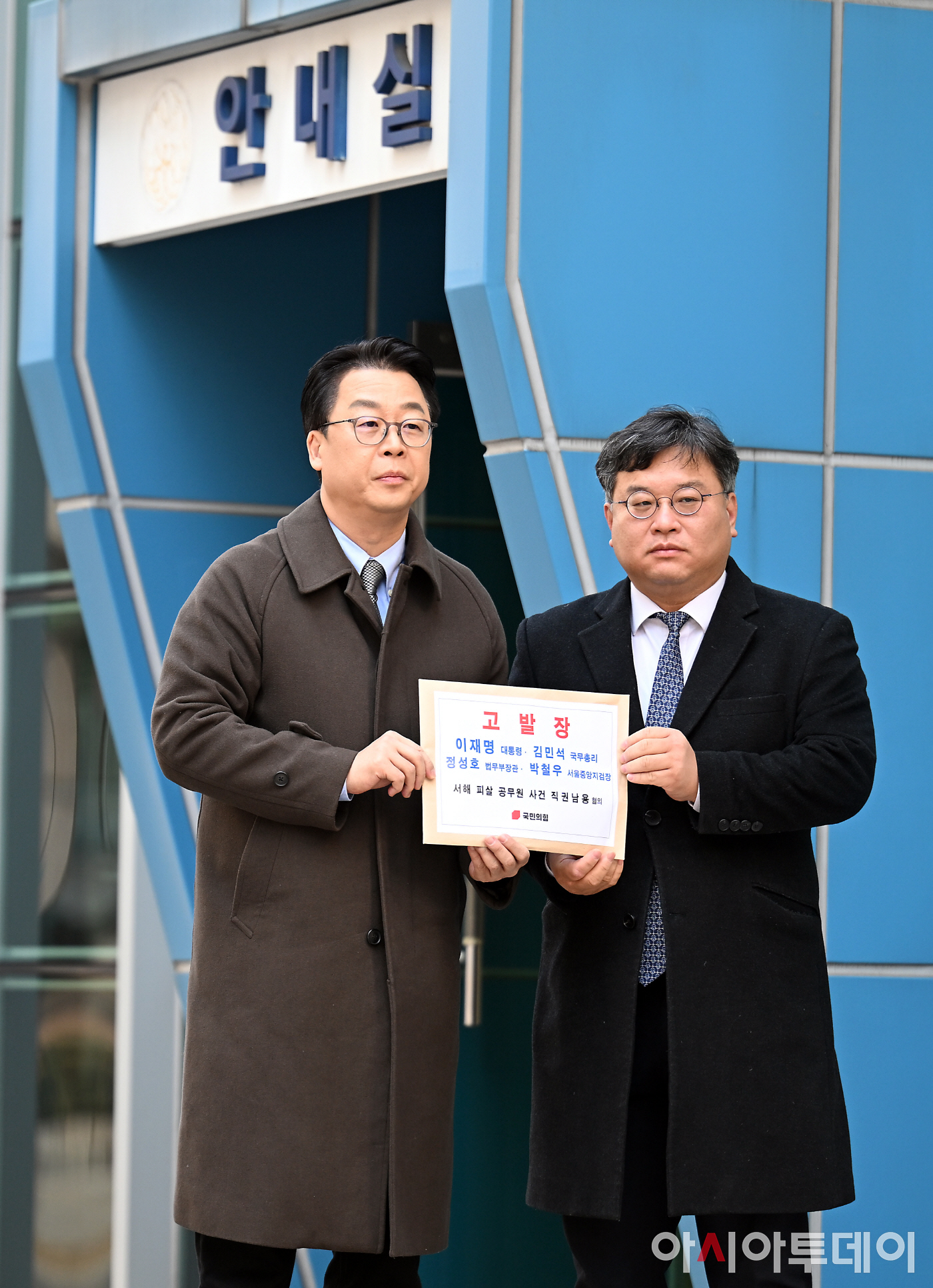 아시아투데이 박성일 기자 = 국민의힘 법률자문위원회 곽규택 위원장(오른쪽)과 김기윤 부위원장이 7일 서울 종로구 서울경찰청 민원실에서 이재명 대통령과 김민석 국무총리, 정성호 법무부 장관, 박철우 서울중앙지검장에 대해 서해 피살 공무원 사건 관련 직권남용혐의로 고발장을 접수하기 위해 서울지법으로 오고 있다.