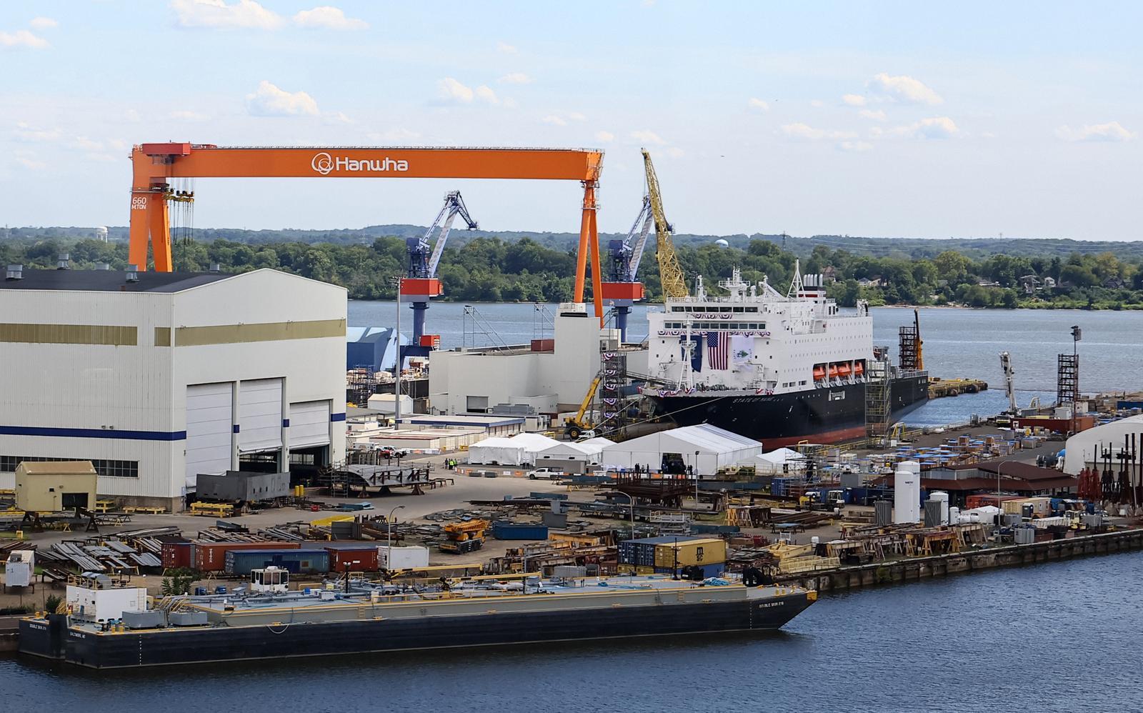 26일(현지 시간) 미국 펜실베이니아주 필라델피아의 한화 필리조선소에 미국 해양청 발주 국가안보 다목적선 ‘스테이트 오브 메인’호가 정박해 있다. 2025.08.27. [필라델피아=뉴시스] |