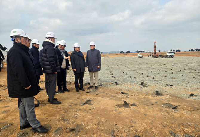 삼성SDS 컨소시엄 설립위원들이 1월 7일 전라남도 해남군에 위치한 국가 AI컴퓨팅센터 현장을 방문해 예정 부지를 점검하고 있다.(사진=삼성SDS) |