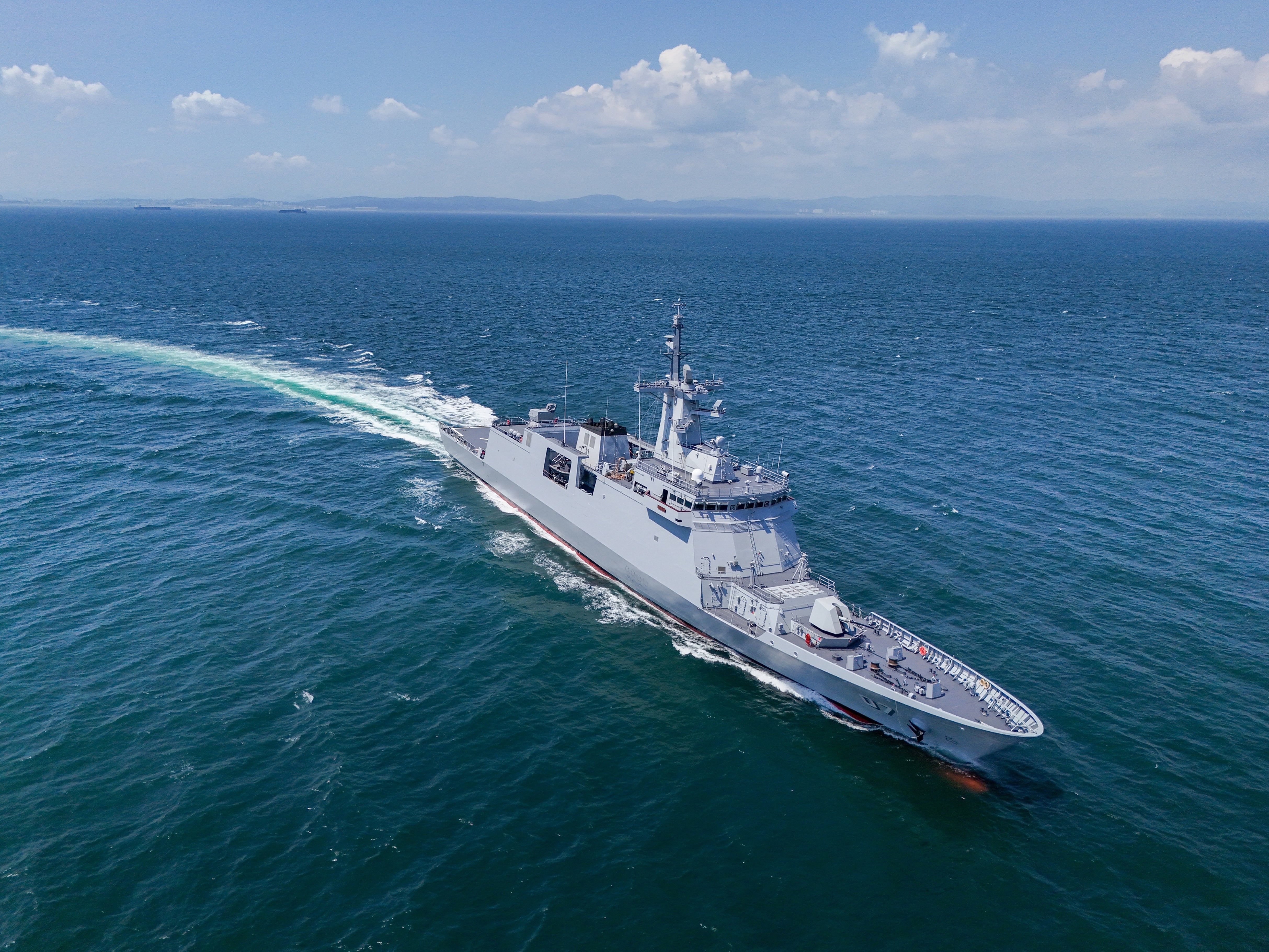 HD현대중공업이 지난해 10월 필리핀 해군에 인도한 3200톤(t)급 미겔 말바르급 호위함 2번함 디에고 실랑함의 시운전 모습. /HD현대중공업 제공 |