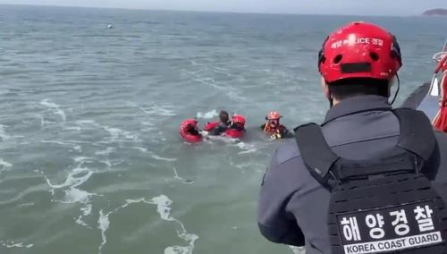 작년 3월 하나개해수욕장서 고립자 구조하는 해경 |