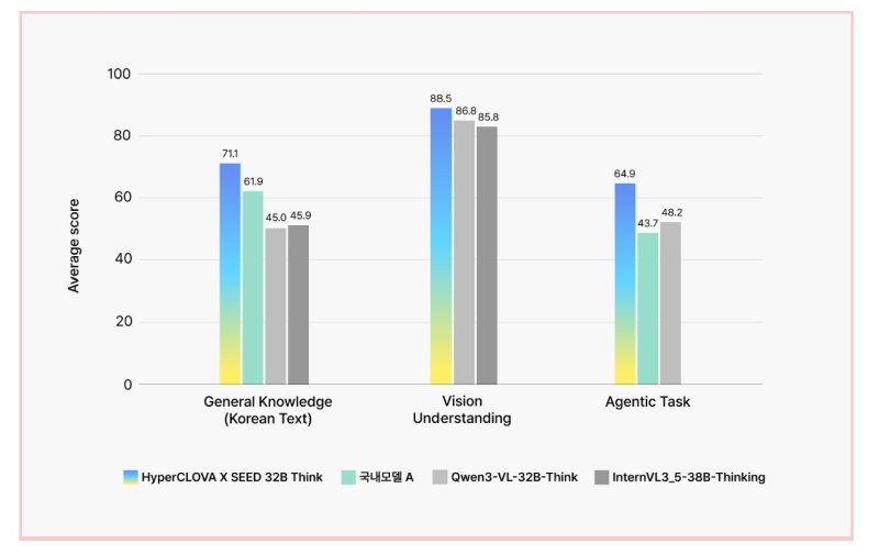 네이버클라우드의 고성능 추론모델 '하이퍼클로바 X 시드 32B 싱크'(HyperCLOVA X SEED 32B Think) 벤치마크 (네이버클라우드 제공) /사진=뉴스1 |