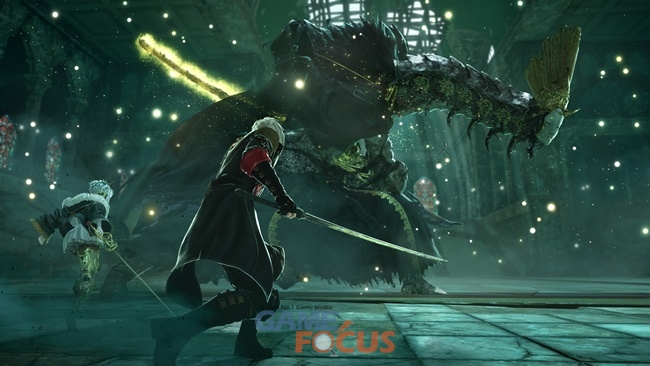 시행착오를 겪어가며 도전하는 플레이를 지향한다고 했는데 몬스터 디자인만 보고는 공격 패턴을 알기 힘들더라. 도끼를 든 몬스터가 강한 일격을 쓰는 몬스터일 것 같았는데 폭발 추가타가 들어오는 등 일반 몬스터도 맞아 봐야 패턴을 알겠던데 의도한 부분인가 요시무라 디렉터: 이번 작품에서의 적과의 배틀은 액션 면에서 플레이어와 적 모두 퀄리티를 올리자는 것을 프로젝트의 목표로 두고 개발했다. 특히 적의 행동을 보고 파악하고, 넘어서는 면에서는 보스 뿐만 아니라 일반 적들도 같은 콘셉트로 퀄리티업에 힘썼다.