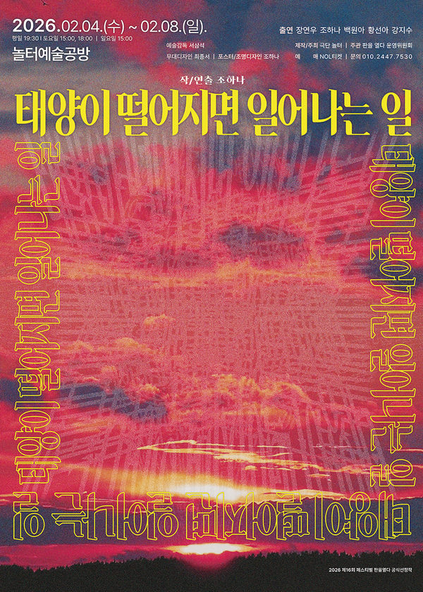 '2026 페스티벌 판을 열다' 공식참가작으로 선정된 이번 연극은 창작진과 관객이 함께 호흡하는 열린 페스티벌의 무대를 예고한다. 공연은 오는 2월 4일부터 2월 8일까지 성북구에 자리한 놀터예술공방에서 펼쳐지며, 평일 저녁과 주말 낮·저녁에 관객들을 맞이할 예정이다.