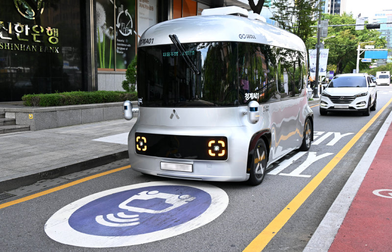 국내 기업이 개발해 서울 청계천에서 운행 중인 자율주행버스 ‘ROii(로이)’. 서울시 제공 |