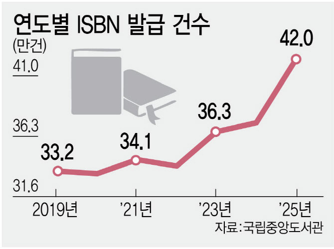 8일 출판계에 따르면 지난해 국립중앙도서관이 발급한 국제표준도서번호(ISBN) 발급 건수는 41만 9534건으로 전년(36만 9628건)대비 13.5% 증가한 것으로 집계됐다. 직전 5개년 평균 성장률이 2%대에 그쳤던 ISBN 발급 건수는 지난해 통계 작성 이래 처음 두 자릿수대 증가율을 기록했다.