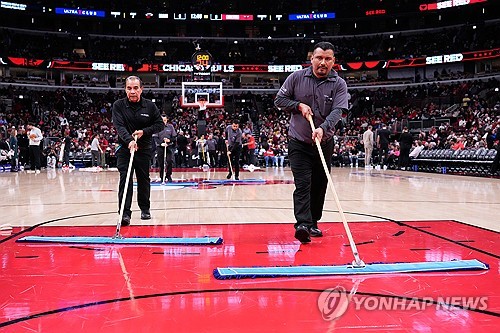 코트 닦는 유나이티드 센터 직원들 |