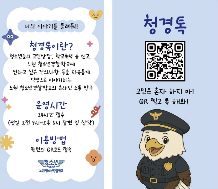 서울 노원경찰서 청소년경찰학교는 자체 상담·소통 창구인 청경톡을 운영하고 있다. 경찰청 제공 |