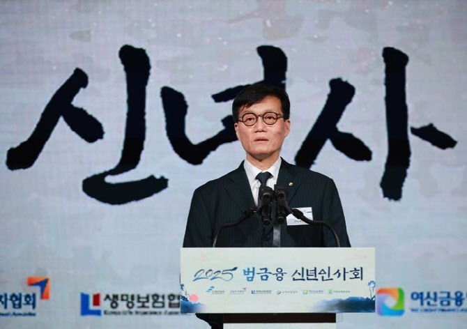 이창용 한국은행 총재가 3일 오후 서울 중구 롯데호텔에서 열린 2025년 범금융신년인사회에서 신년사를 발표하고 있다. (사진=한국은행) |