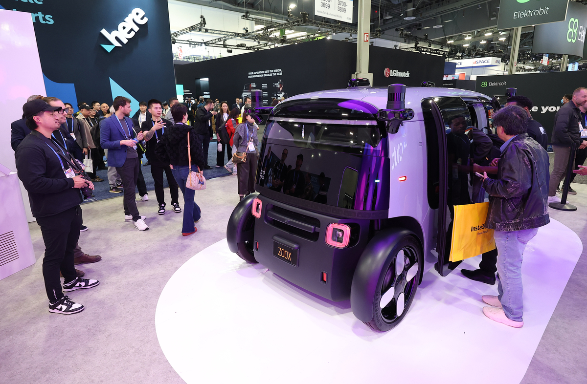 CES 개막일인 지난 6일(현지시간) 미국 네바다주 라스베이거스 컨벤션센터(LVCC)의 미국 자율주행 업체 죽스(ZOOX) 부스에서 관람객들이 탑승을 기다리고 있다. 연합뉴스 |