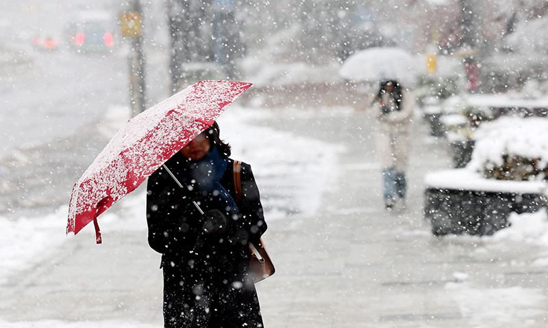 폭설이 내리는 가운데 시민들이 눈을 맞으며 걸어가고 있다. 뉴시스 |