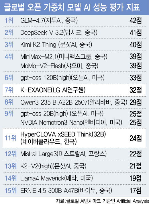 AAII 오픈 웨이트 순위서 LG 7위·네이버 11위…중국 8개, 미국 4개