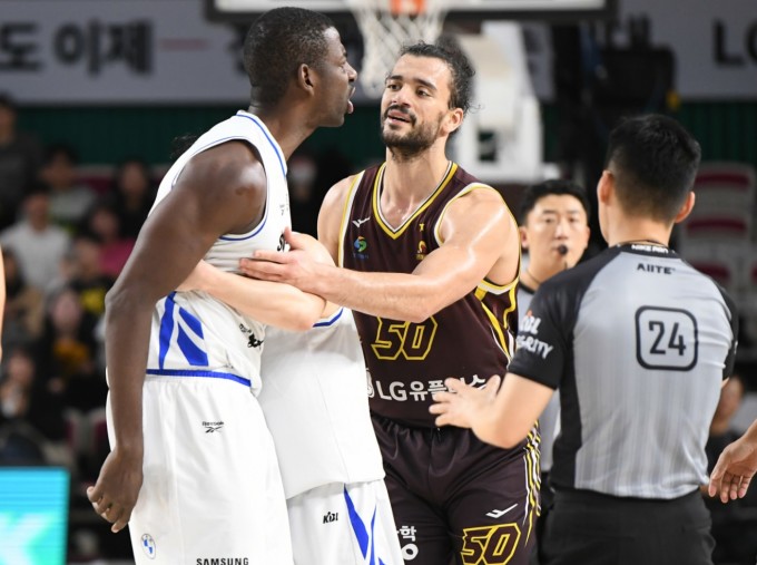 [서울=뉴스핌] 박상욱 기자 = 7일 LG전에서 판정에 항의하는 니콜슨. [사진=KBL] 2026.01.11 psoq1337@newspim.com |