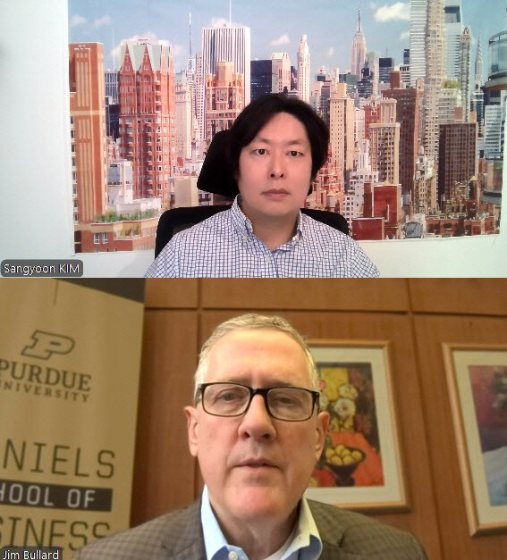 김상윤 이데일리 뉴욕특파원이 제임스 불러드 전 세인트루이스 연방준비은행 총재를 화상 인터뷰 하고 있다. |