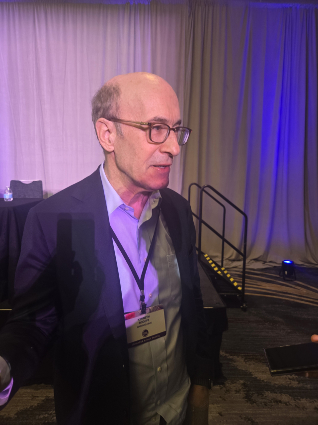 정작 로고프 교수는 총회 강연에서 도널드 트럼프 대통령의 약달러 유도 정책에 대해 날 선 비판을 쏟았다. 그는 특히 트럼프 행정부의 스테이블코인(가치안정형 디지털자산) 관련 규제 완화 조치에 주목하면서 경제학자로서 받아들일 수 없다는 듯 분통을 터뜨렸다. 트럼프 대통령이 달러에 가치를 연동시킨 스테이블코인을 제도권으로 편입하는 이른바 ‘지니어스법’에 지난해 7월 서명한 일을 두고 “파괴적” “선거 자금줄” 등의 거친 표현도 서슴지 않았다. 법률적 안전장치가 부족한 상황에서 달러에 불투명한 거래 수단을 연계할 경우 신뢰성은 떨어지고 변동성이 커져 안전자산의 기능을 급격히 상실할 것이라는 우려에서다.