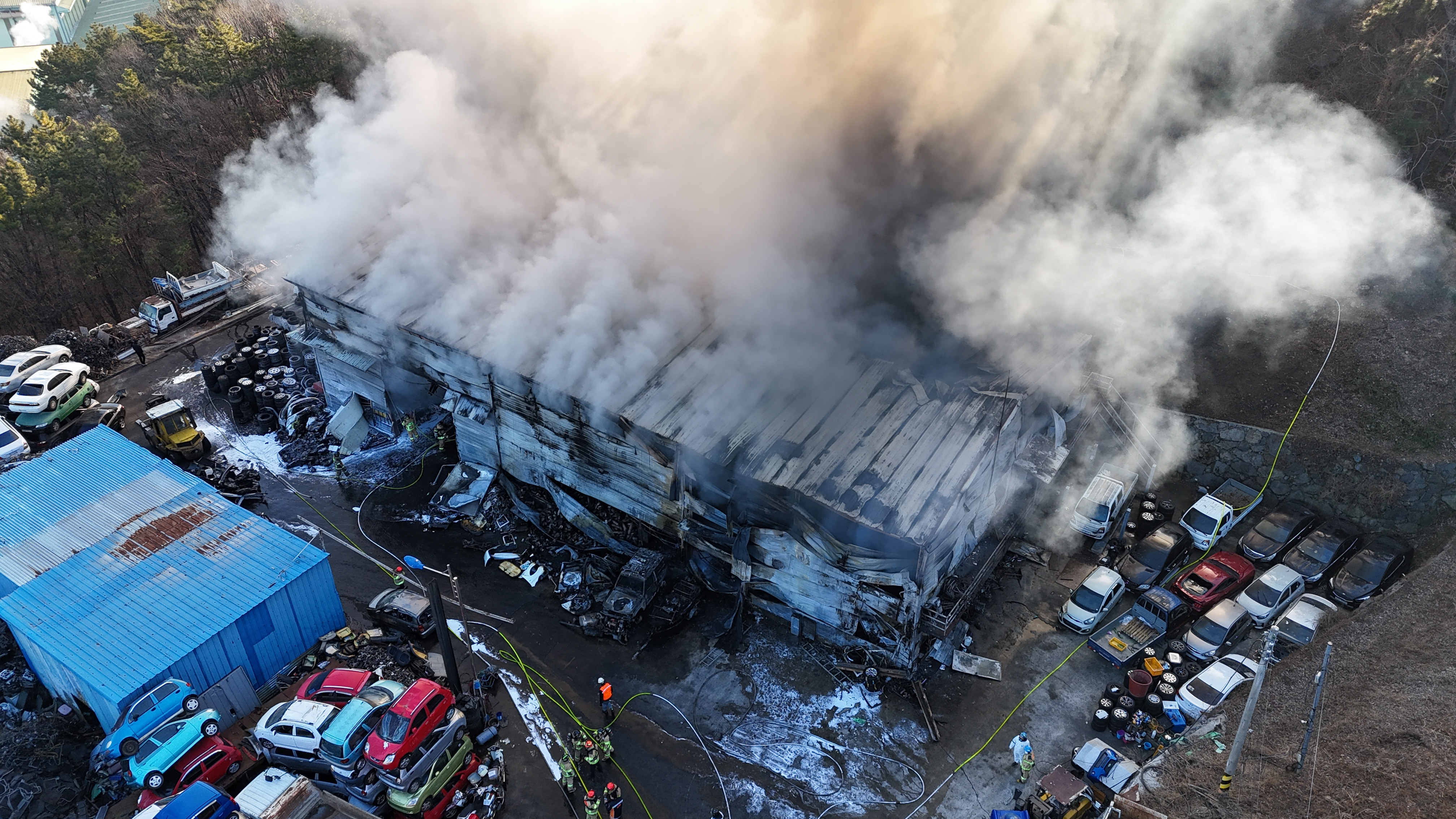 오늘(12일) 오전 7시 50분쯤 경남 거제시 장평동 한 폐차장에서 불이 났습니다.