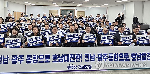 (무안=연합뉴스) 형민우 기자 = 더불어민주당 전남도당은 12일 "광주·전남 행정통합은 전남도의회와 광주시의회의 의결을 통해 추진하겠다"고 밝혔다.