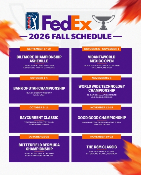중계 일정도 정리됐다. 미국에서 열리는 4개 페덱스컵 가을 대회는 모두 ESPN+를 통해 중계된다. 반면, 지난 시즌 일정에 포함됐던 프로코어 챔피언십과 샌더슨 팜스 챔피언십은 이번 시즌에는 열리지 않는다.