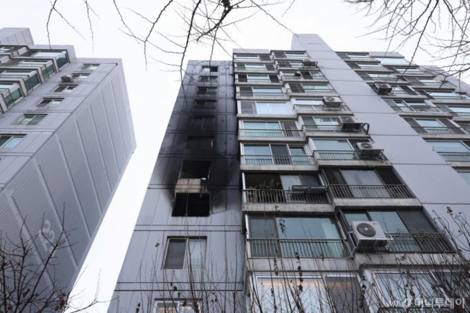 [서울=뉴시스] 김근수 기자 = 24일 서울 송파구 올림픽선수기자촌 아파트에서 화재가 발생해 아파트 건물 외벽이 검게 그을려 있다. 2025.12.24. ks@newsis.com |