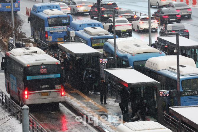 [이데일리 이영훈 기자] 통상임금 판결에 따른 임금 인상안을 두고 사측과 첨예하게 대립해온 서울 시내버스 노조가 파업 예고일을 하루 앞둔 12일 오전 서울 중구 서울역 버스환승센터로 버스가 도착하고 있다.