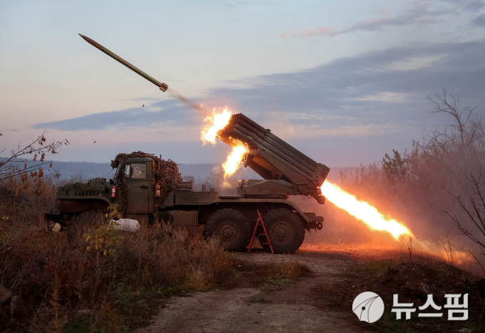 [코스티안티니우카 로이터=뉴스핌] 홍우리 특파원 = 23일(현지 시간) 우크라이나군 제148 독립포병여단 '지토미르' 소속 군인들이 우크라이나 도네츠크 지역 최전선 도시인 코스티안티니우카 인근에서 러시아군을 향해 BM-21 그라드 다연장 로켓포를 발사하고 있다. 2025.10.24 hongwoori84@newspim.com |