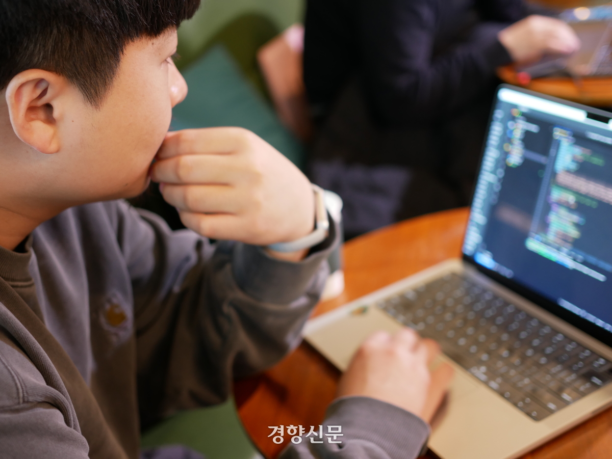 지난달 6일 경기 김포의 한 카페에서 ‘팔콘아이즈’ 대표 주현우씨가 중국 알리바바의 오픈소스 AI 이미지 생성 모델 ‘Z이미지’를 이용해 작업을 해 보고 있다. 김상범 기자 |