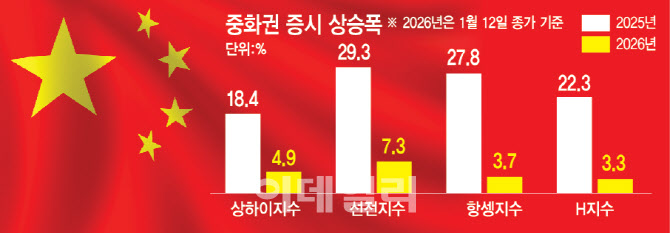 골드만삭스는 AI 확산과 기술 혁신 등을 이유로 2026~2027년 중국 증시가 연간 15~20% 오를 것이라고 내다봤다. 모건스탠리도 올해 모건스탠리캐피털인터내셔널(MSCI) 중국 지수가 연간 3.4% 정도 상승할 수 있다고 예측했다.