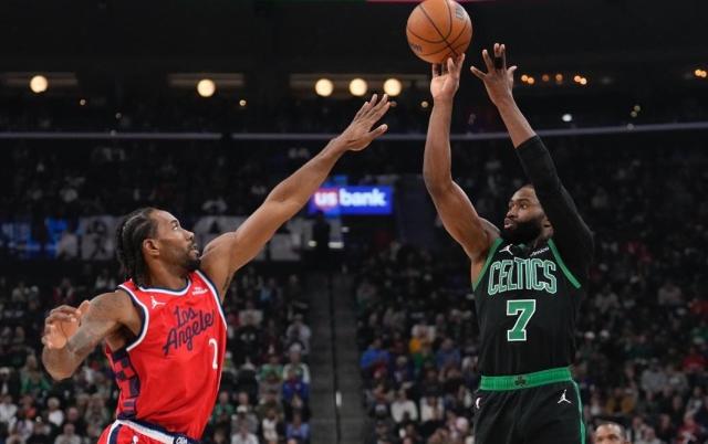 제일런 브라운(오른쪽)이 슈팅하고 있다. [사진=AP·연합뉴스] |