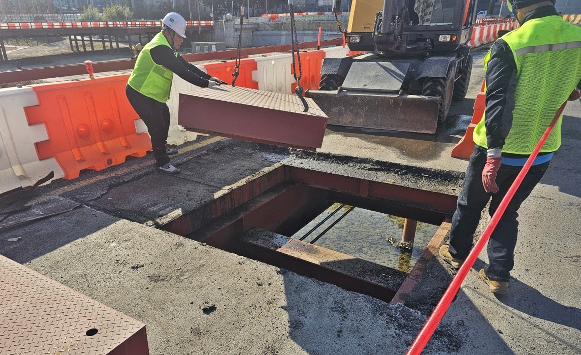 특히 가설 후 1년 차 도래 시점에 복공판 17개에 대한 추가 품질시험을 한 결과 외관 상태 및 성능시험(내하중성) 전 항목에서 모두 '적합' 판정받았습니다.