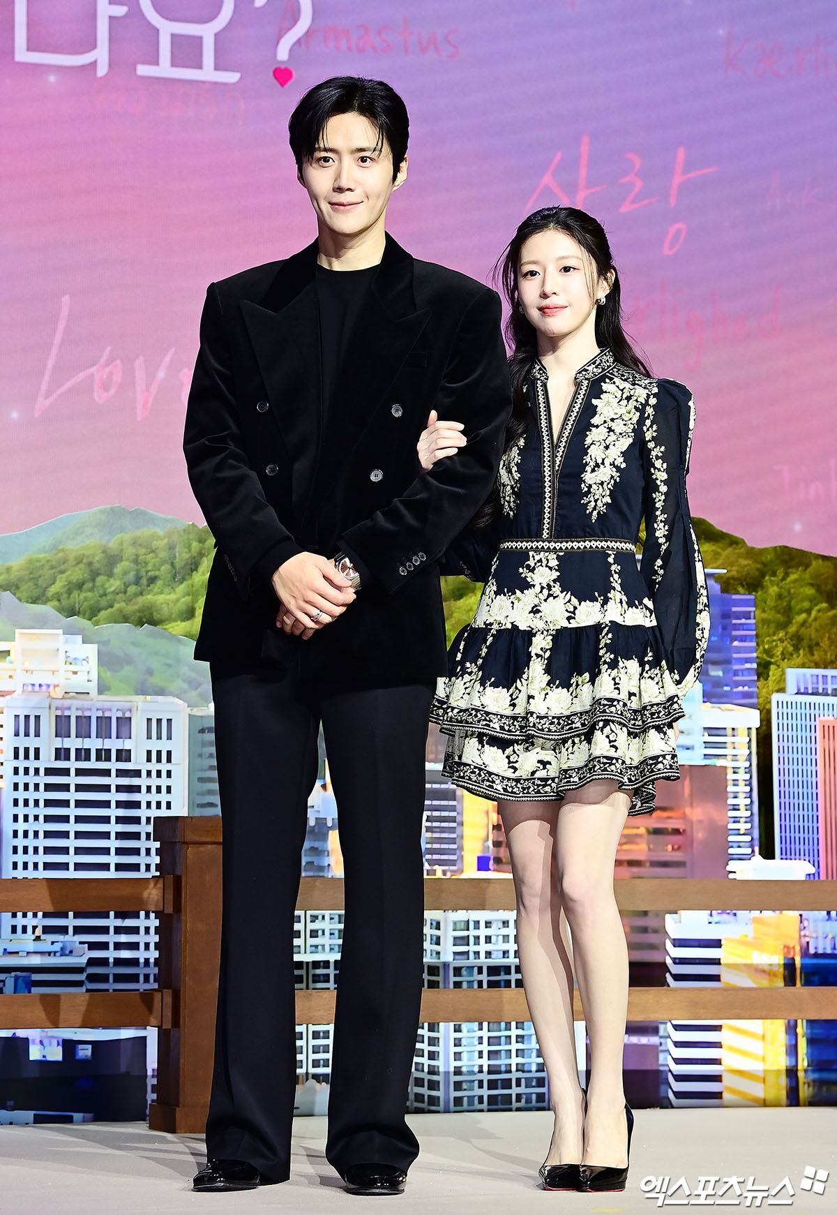 이날 제작발표회에 참석한 배우 김선호, 고윤정이 포토타임을 갖고 있다.
