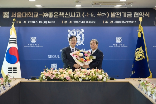 (서울=연합뉴스) 홍준석 기자 = 서울대는 13일 홍범준 좋은책신사고 대표로부터 '발칙한 자연과학적 상상과 수리 논증을 위한 무주·쎈 연구기금' 1천억원을 기부받았다고 밝혔다.