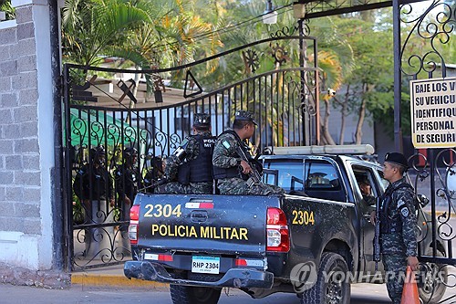 11일(현지시간) 온두라스 선거 물품 보관소 지키는 장병들 |