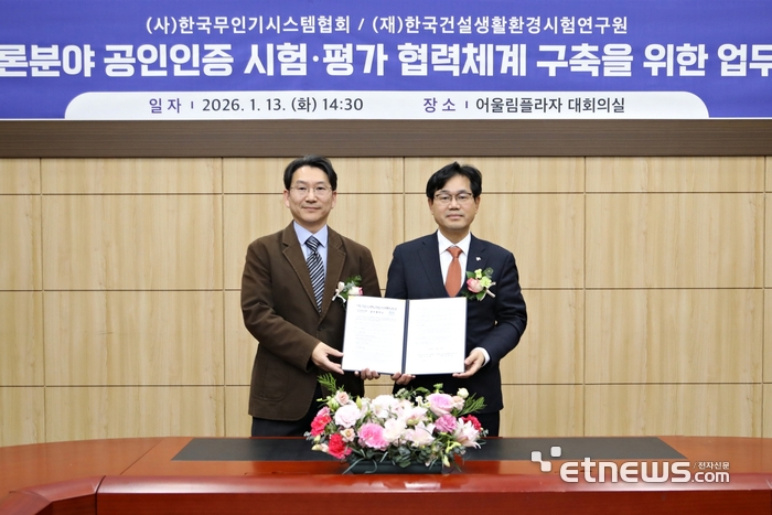 KCL은 지난 13일 대전테크노파크에서 무인기시스템협회와 드론 공인시험·평가 협력체계 구축을 위한 업무협약(MOU)을 체결했다. 이번 협약은 급성장하는 드론 산업 환경에 대응해 국방·방산 분야 공인시험기반 및 인증체계 마련을 목표로 추진됐다.