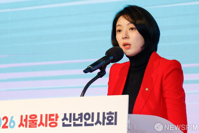 [서울=뉴스핌] 류기찬 기자 = 배현진 국민의힘 서울특별시당 위원장이 14일 오전 서울 여의도 중소기업중앙회 KBIZ홀에서 열린 2026 국민의힘 서울시당 신년인사회에서 신년사를 하고 있다. 2026.01.14 ryuchan0925@newspim.com |