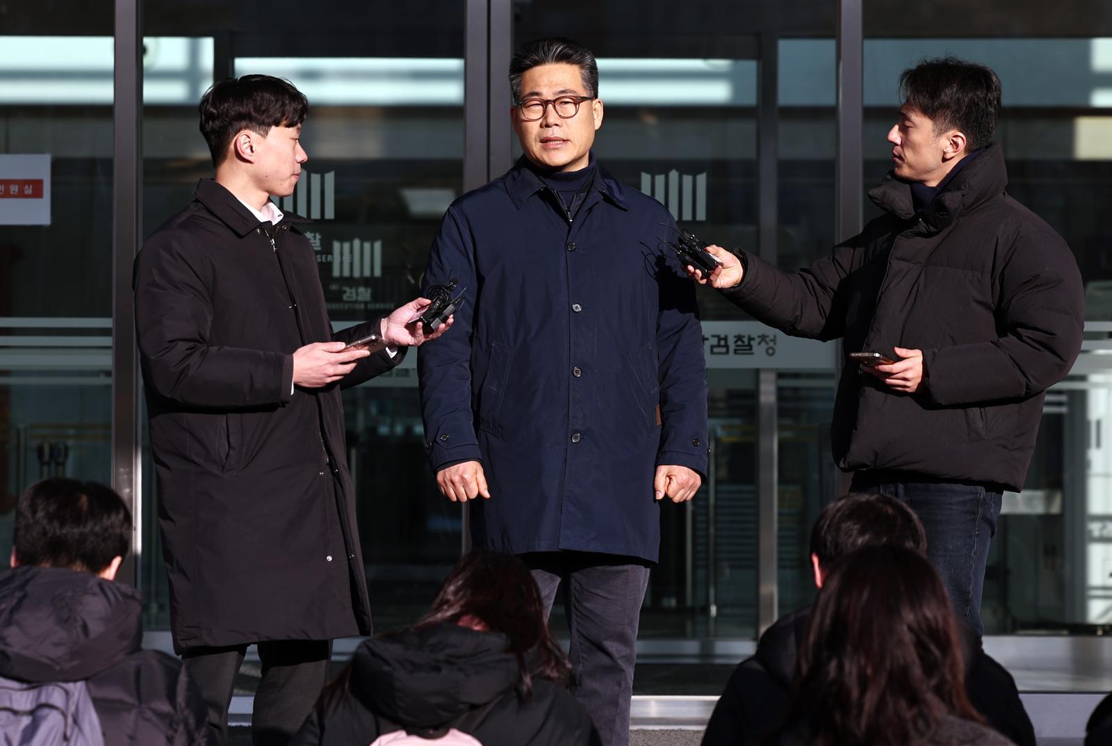 서울동부지검에 파견돼 3개월간 ‘세관 마약수사 은폐 의혹’을 수사한 백해룡 경정이 14일 오전 서울 송파구 동부지검에서 파견 종료 입장을 밝히고 있다. 2026.1.14 (서울=뉴스1) |