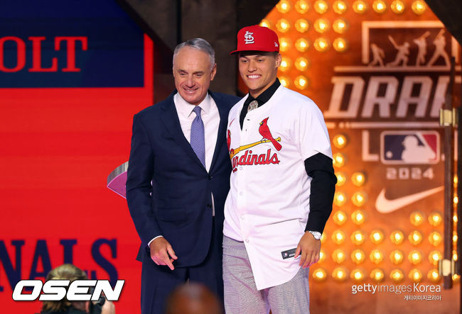 웨더홀트는 ‘MLB파이프라인’ 기준 메이저리그 전체 5위, 팀 내 1위에 랭크된 초특급 유망주다. 2024년 신인드래프트 1라운드 전체 7순위로 세인트루이스에 지명된 웨더홀트는 지난해까지 2년 만에 초고속으로 마이너리그를 정리했다.