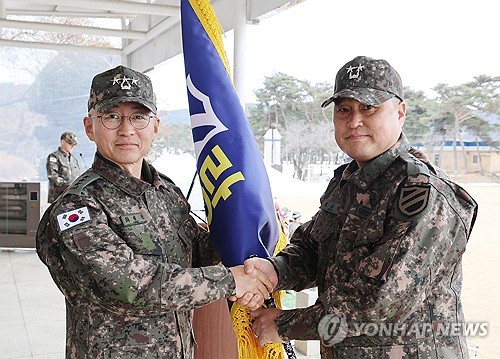 (홍천=연합뉴스) 양지웅 기자 = 육군 11사단장 취임식이 14일 강원 홍천군 사단사령부 연병장에서 열렸다.