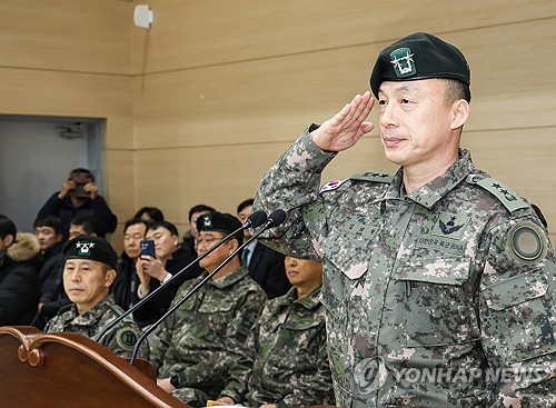 (화천=연합뉴스) 양지웅 기자 = 육군 15사단장 취임식이 14일 강원 화천군 승리체육관에서 열렸다.